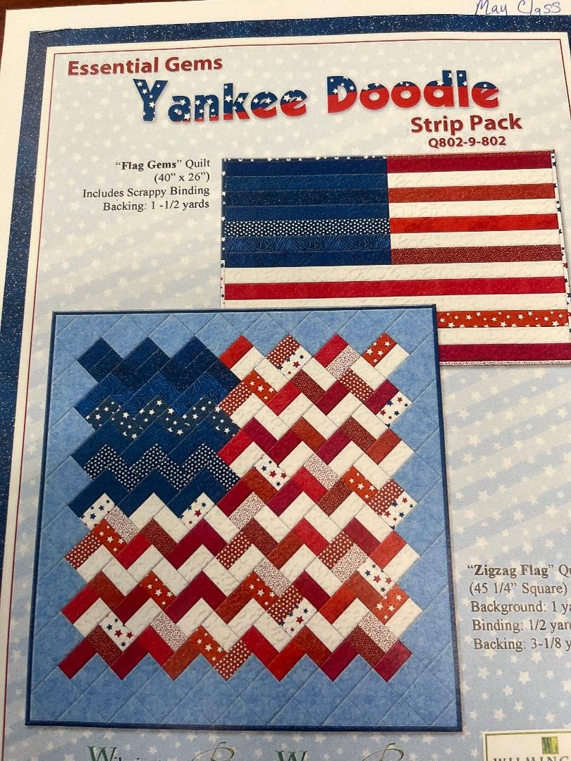 We'll be making the "Yankee Doodle ZigZag Flag Gems" Quilt from Wilmington. It's a beautiful patriotic zig zag quilt that finishes approximately 46" square.